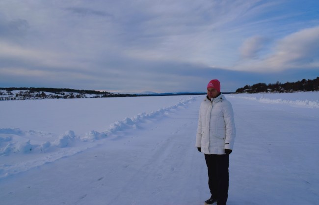 Just som en repris blir det varje gång vi åker till Åre. Min svägerska kommer till mig någon dag i förväg och sedan följs vi åt till min andel i lägenheten vid Holiday club. Det blir alltid en trevlig vecka och trots att jag helst vill bli av med min andel ser jag varje år fram emot att vi tillsammans ska promenera omkring, prata massor och däremellan koppla av rejält så att vi sedan ska orka börja om från början igen. I fredags kom min svägerska och vi hann med både en kvällspromenad, en tur till Willys morgonen efter för att handla all mat vi skulle ha med oss och en skön promenad efter lunchen på lördagen. Äntligen är Medvinden färdig att ta sig fram på. Vi var nästan helt ensamma på isen och det förvånade oss. Det brukar vara populärt att gå, cykla, åka skridskor eller skidor, åka spark eller springa här och särskilt mitt på dagen en lördag.