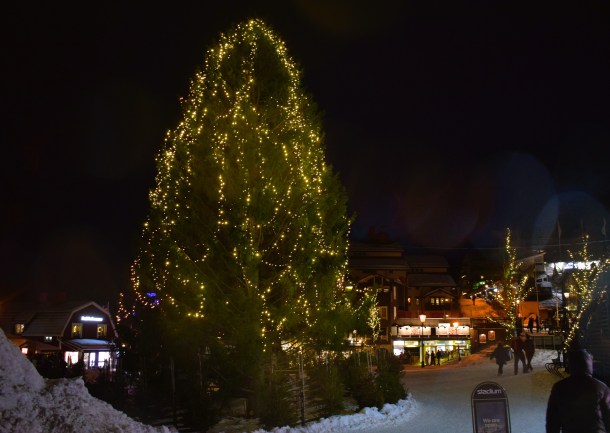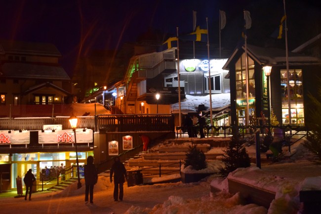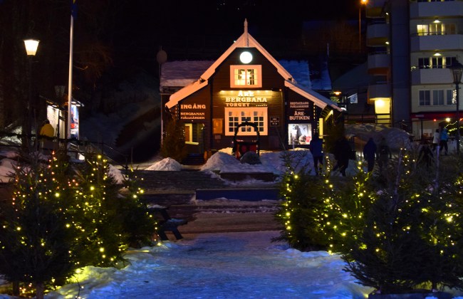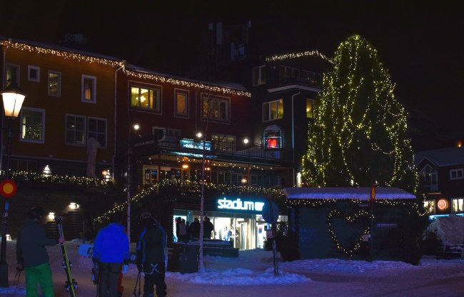 Som vanligt checkade vi in nästan exakt 16.oo och efter att ha packat upp alla färskvaror fixade vi en enkel måltid bestående av makaroner och vegobollar. Det äter jag väldigt sällan av någon anledning men gott var det. Vi följde vår rutin och gick sedan ut för att röra lite på oss och vi kom till Åre torg när det började blåsa rejält och ett hårt regn slog emot oss. Tyvärr töar det här men på tisdag ska det bli kallare igen. Julen är inte över än här i Åre. Det var ganska tjusigt när den maffiga granen rörde sig i vinden.
