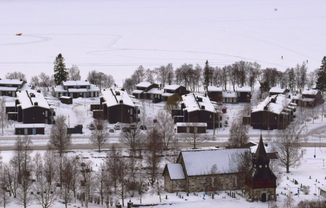 Det har varit mer solsken än förväntat och det tackar vi för. Det blir finare att titta ut genom fönstret då. Lite rimfrost skulle inte göra något men backarna är i alla fall vita och det är ju huvudsaken. Bilden är tagen från lägenheten.