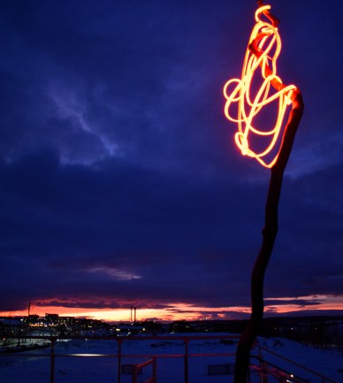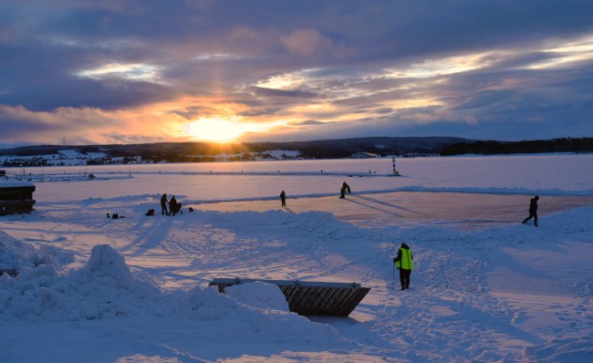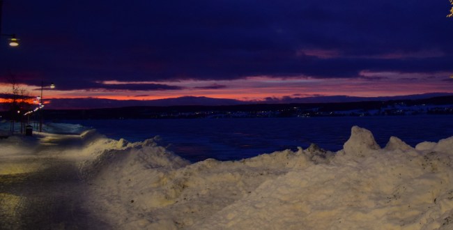 En familjepromenad på isen. Den dåliga kvatitén kan jag skylla på att jag inte såg hur jag fotade. Mina glasögon hade immat igen av min andedräkt och imman frös till is. Jag chansade men frös om händerna när vantarna åkte av så det blev bara ett försök. Fokus verkar inte ha fastnat på något i bilden 😀 Fotot är beskuret och det var nog kanske inte så bra.