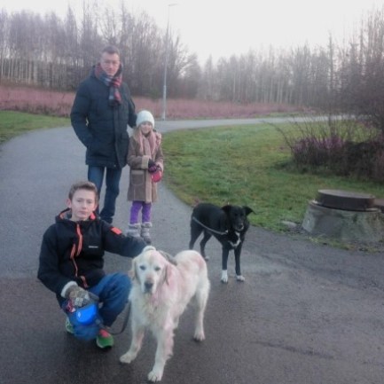 Det var precis så kul som jag trodde. Han lät så glad och det är han verkligen värd att få vara. När han berättade att hans son har flyttat till Stockholm med en kompis för att ägna sig åt musik frågade jag vad för slags musik. Då ropade han på sin son, som just nu är i Italien, och plötsligt kom en mörk röst i telefonen, en röst som tillhörde en ung man som har hunnit bli 21 år. Ja, ni såg ju bilden i ett tidigare inlägg. Varför blir man så förvånad för att barn växer upp? Han måste ha tyckt att det kändes lite jobbigt att behöva prata med mig men han svarade snällt och artigt och lovade skicka en länk med sin musik. Han mindes inte deras besök i min lilla tillfälliga lägenhet utan bara huset vid sjön (hans uttryck) men han la till att hundarna kan man inte glömma. En liten glädje i rösten hörde jag då. Tänk att mina fina vovvar gjorde ett så starkt intryck. Dottern är nu 18 år och går i skolan i Italien. Min vän skickade foton på barnen och jag hade absolut inte känt igen dem om jag hade mött dem. Nu ska vi båda vara bättre på att hålla kontakten och inte låta det gå flera år igen.
