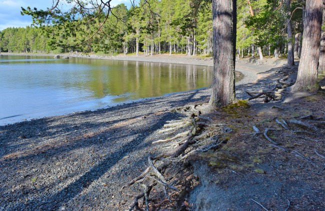 Jag blir lika fascinerad varje gång över hur dessa träd klarar sig när halva rotsystemen hänger fritt eller har tagit stöd av stranden. Förmodligen är det vindar och vatten i form av vågor och kanske kraftigt regn som har gröpt ur jorden och eftersom de står kvar så stadigt så måste rötterna på andra sidan ha vuxit sig väldigt kraftiga som kompensation.