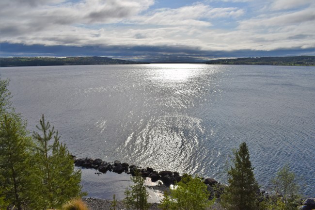 Rakt fram ser ni Bynäset och till vänster om det ligger Andersön. Det blåste rejält här så jag skyndade vidare mot nästa stolpe och vidare mot mindre blåsiga platser.