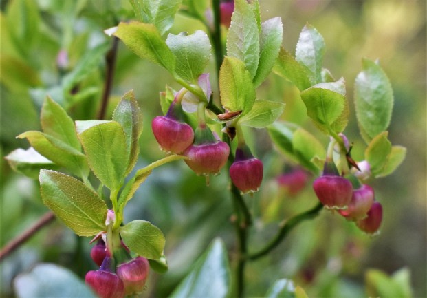 Efter en stund lyckades jag med hjälp av buskar dra mig uppför den backe jag skrev om och fortsatte på stigen bort mot de två återstående stolparna. Minnen finns överallt och här finns ett av många bra blåbärsställen längs stigen. Jag vet inte varför men i en speciell backe stannade alltid våra två hundar när det var säsong för blåbär. Där stod de och mumsade i sig de goda bären och kunde ha gjort så väldigt länge om inte vi hade tröttnat och velat gå vidare. Självklart stoppade vi också i oss blåbär men vi hann oftast inte äta så många innan särskilt Kasper tittade förebrående på oss och tydligt visade att det var meningen att vi skulle plocka åt honom. Snälla och lydiga som vi var delade vi då med oss och fördelade det mesta skörden till våra vovvar. Blåbär är avgiftande och fulla med antioxidanter så det var säkert bra för deras magar. Av vad jag såg igår verkar det bli en hel del blåbär i år.