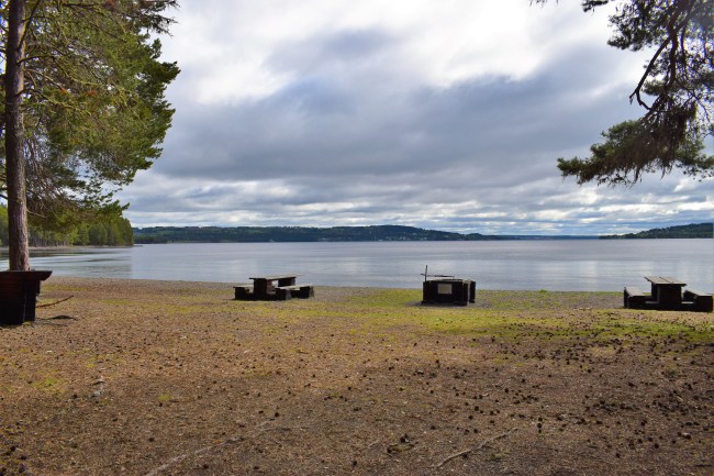 I morse for jag över bron till Annersia och parkerade vid Sandviken, där många har svängt sina lurviga till både kända och mindre kända dansband. Där finns även en liten camping och stugby. Jag visste inte att det fanns både elljusspår och många andra stigar i området ovanför men det fanns gott om alternativa stigar. Jag tog fram kartan i mobilen och började min stolpjakt. Det var mycket uppför men å andra sidan var det mycket nerför på slutet så i genomsnitt kan man nog säga att det var ganska plant. Jag kom ganska snart fram till en liten lägereldsplats. Tältet ser inte ut att vara till för övernattningar utan mer som en alternativ eldplats. Lite senare kom jag till ett vindskydd och som den gamla scout jag är var jag ju tvungen att gå fram och kolla att dubbelt halvslag och najning såg bra ut. Det var helt ok.