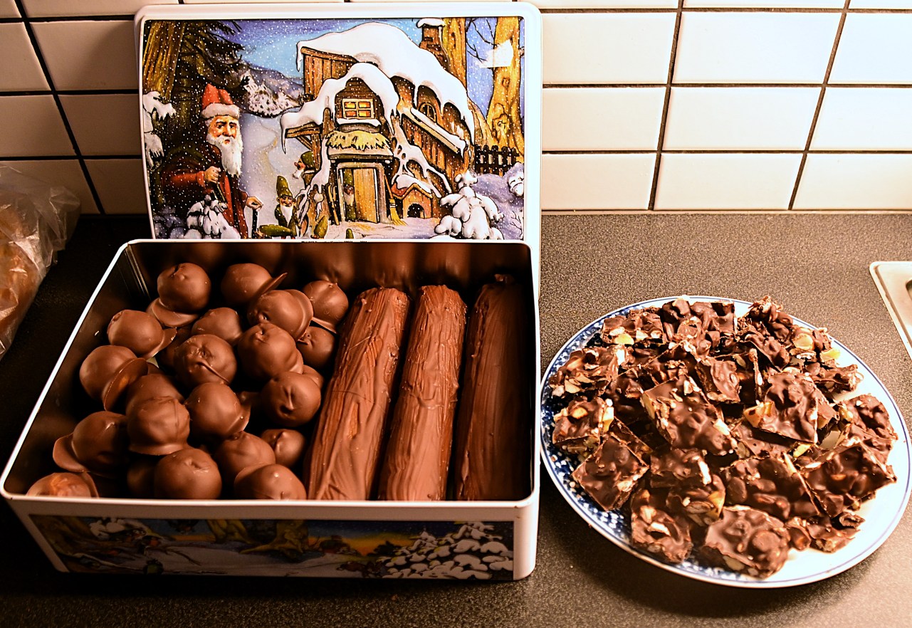 Men jag har även förberett en del inför julen. Lussebullar är bakade och den här veckan har jag gjort julgodis och bakat några kakor. Julgodiset är det gamla vanliga. Vi gillar marsipan eller mandelmassa så det blir veganska varianter av mozartkulor och rocky road. Även de chokladtäckta mandelmasselimporna ska finnas och avnjutas till jul. Att det blev kakor bakade beror till viss del på att min syster har varit här på blixtvisit två gånger nu och jag vet att hon gillar hummus som pålägg. Då blir det aquafaba över och den kan inte förspillas. En mjuk pepparkaka och så de goda brownies som jag nyligen fick ett recept på av en dotter till min svägerska. De här kakorna kommer förmodligen inte att ätas i jul för då ska man orka så mycket annat. Nötter och fikon bl a förutom allt man vräker i sig från julbordet, som inte alls är lika omfattande nu för tiden.