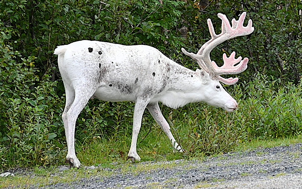 Några hundra meter innan jag var framme dök den här stiliga renen upp. Jag hoppades på att fä träffa många fler renar.